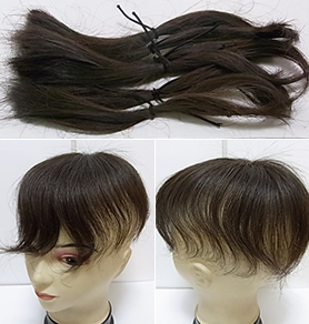 毛長さ30㎝程度の長さの髪にて作成したヘアピース